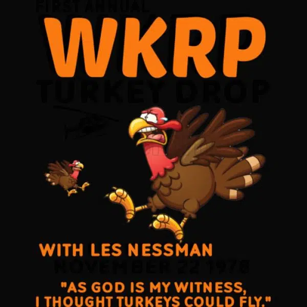 WKRP was created and produced by Hugh Wilson, who based the original concept the characters, and many of the first season’s stories on his own experience on his time spent at a station in Atlanta, WQXI. The Turkey Drop didn’t happen there however. Hugh heard the story while working there about another station in Texas who decided it would be a great idea to drop live Turkeys out of a helicopter.