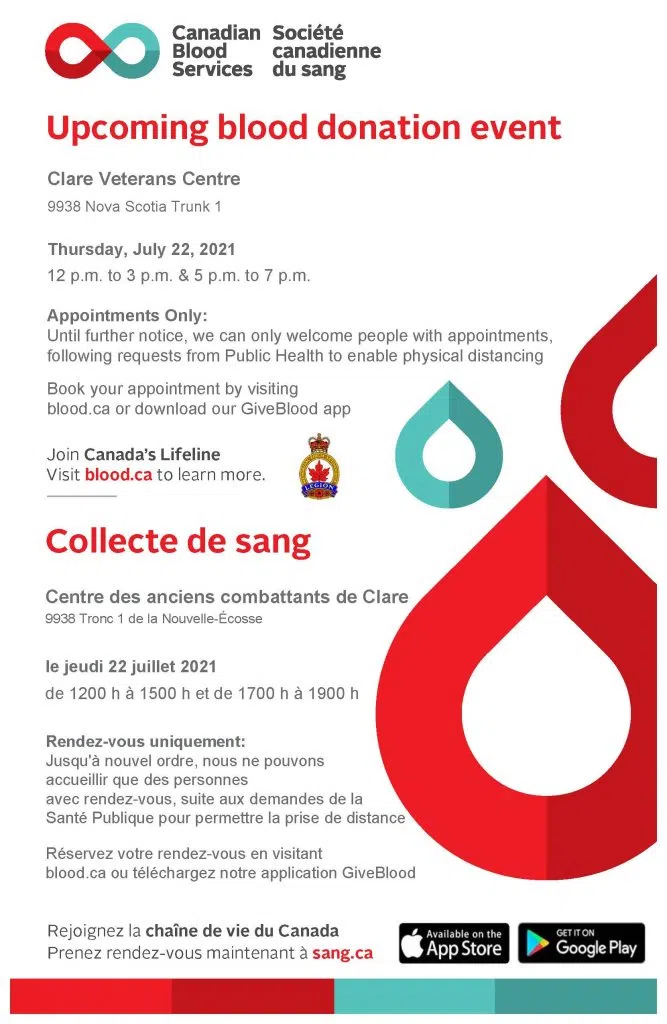 This is the week for Canadian Blood Services to be in the Tri Counties. Yesterday they were in Barrington, today and tomorrow in Yarmouth and Thursday in Clare. And there is always a need for donors.