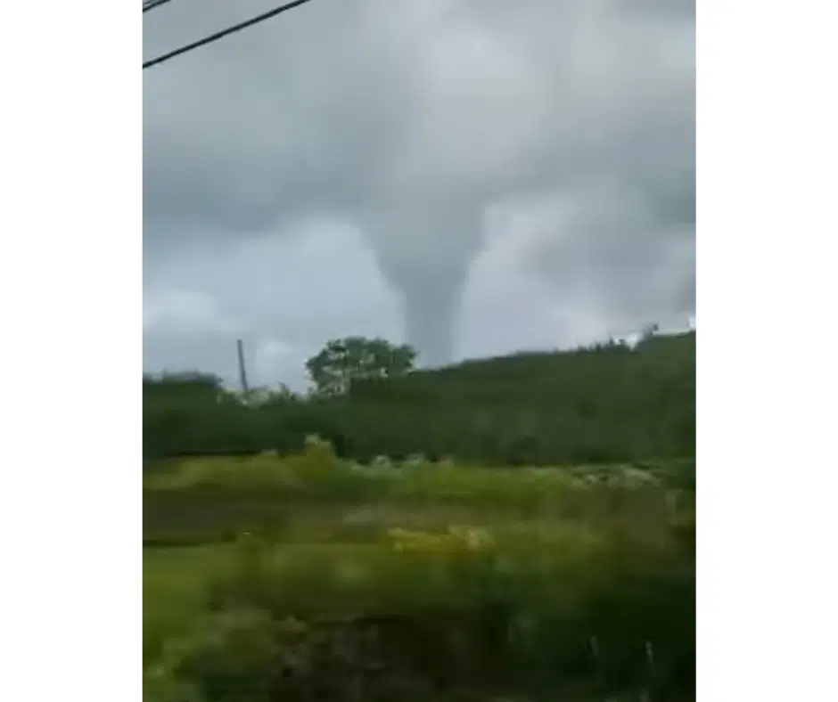 If you tuned in yesterday you probably hear be talk about a strange video that a listener sent me. It’s of a huge cyclone looking cloud that sort of resembles a tornado except it’s not spinning. You can find the video on our Facebook page but here is a screen grab of the clouds! A big thanks again to Mason Leblanc for sending the video in.