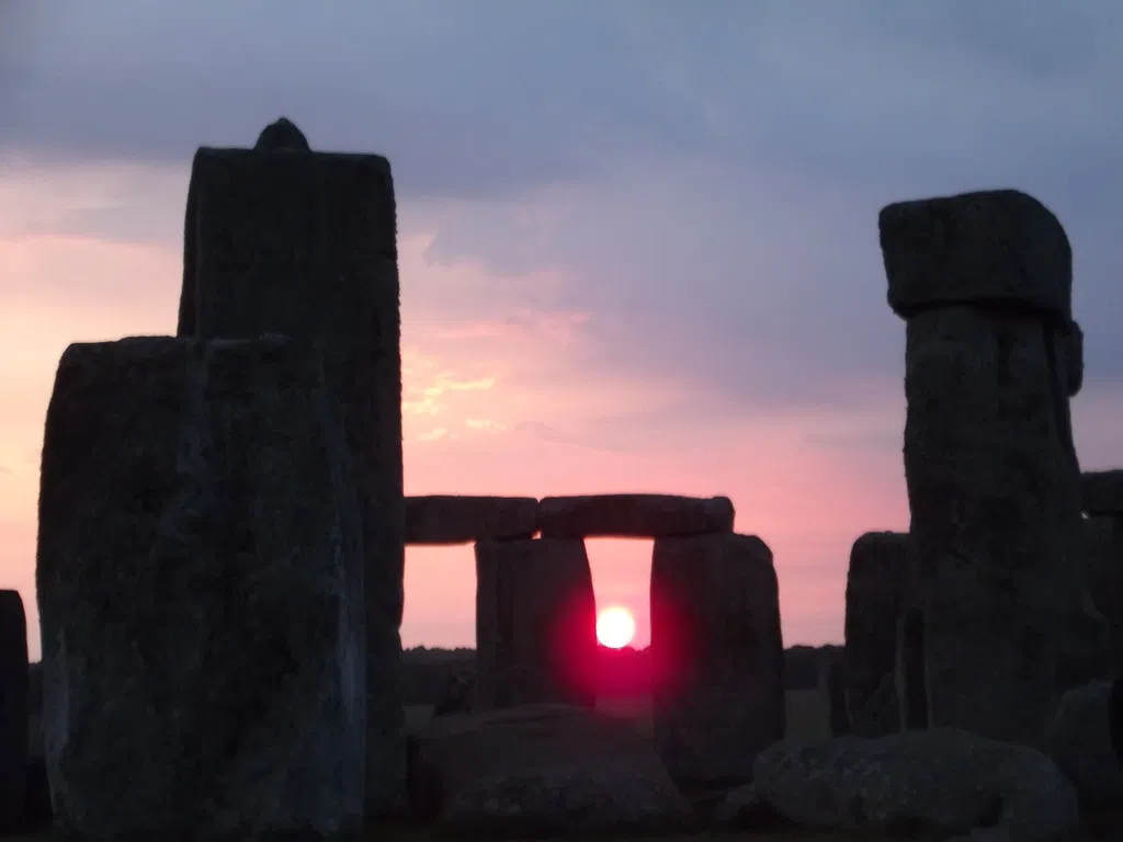 At Stonehenge on the summer solstice, the sun rises behind the Heel Stone in the north-east part of the horizon and its first rays shine into the heart of Stonehenge.