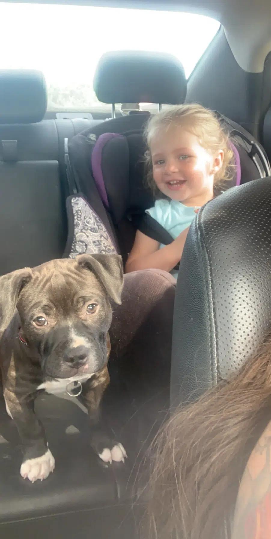 (Jessica Lewis's daughter with their blue nose pit bull 'Bronx'.-photo courtesy Jessica Lewis)