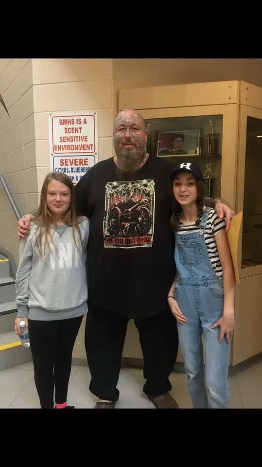 (photo-Micheal ‘Bull’ Roberts Facebook) A former white supremacist gang member says he was brought to tears by students he’s spoken with in the region, last week in Yarmouth, Shelbur...
