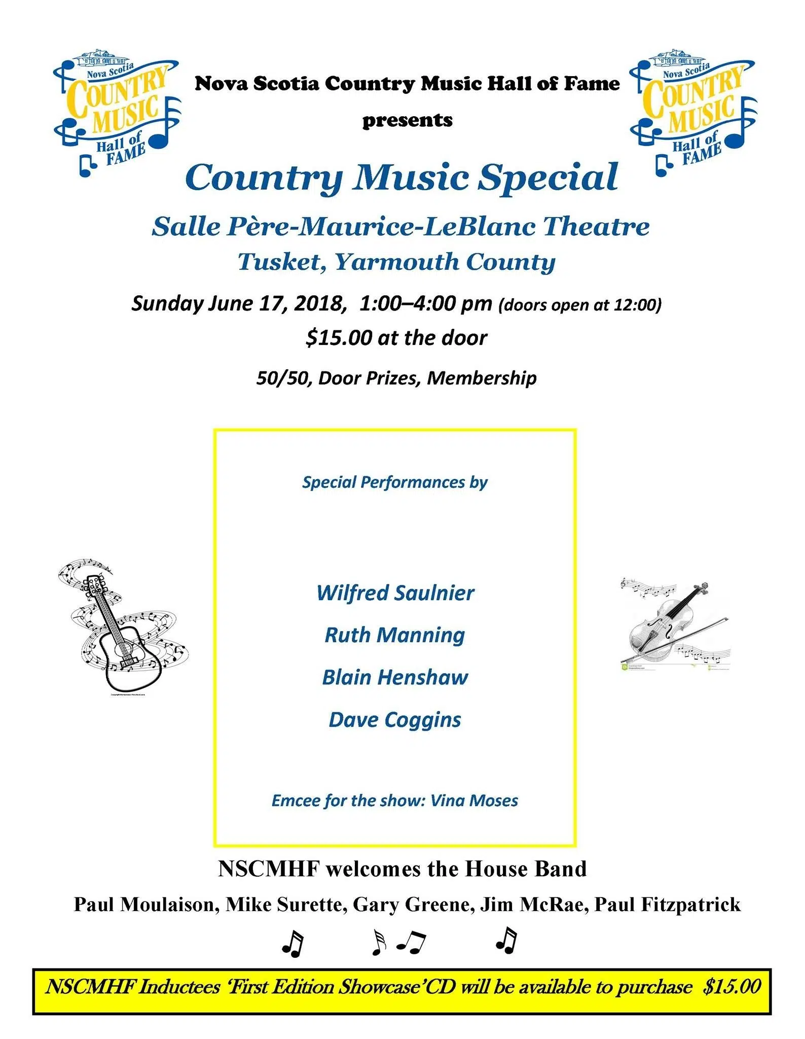 The Nova Scotia Country Music Hall of Fame is hosting a performance in Yarmouth County next Sunday. It features several local artists and other well-known inductees like Dave Coggins and Blaine Hensha...