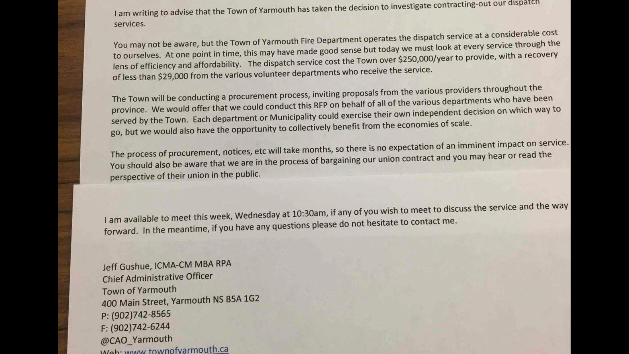 The Town of Yarmouth plans to eliminate four full-time jobs at the Yarmouth Fire Department. The cuts affect dispatchers. Mayor Pam Mood confirmed the cuts to Acadia News this morning. She says town w...